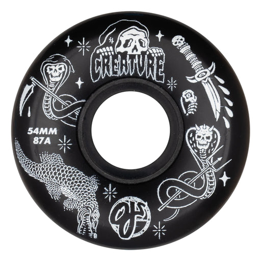 OJ Wheels X.Creature Skateboards Trippy Tanks 54mm, 87a Keyframe in black with graphics by @sketchy_tank.OJ Wheels Keyframes feature 87a soft ureth...