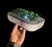 Oval concrete bench with shrubs and a light inside