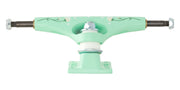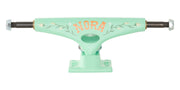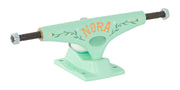For her newest pro model, Nora tapped legendary artist and skateboarder, Lori D. Lori D is one of the creators and designer of Villa Villa Cola, an iconic women's skateboard collective from the late 1990s-early 2000s that ushered in the contemporary era of Women's DIY skateboarding. Lori D's whimsical styling featured on a matte teal colorway with white cushions make this truck one of the most beautiful and note-worthy collabs we've ever had the pleasure of creating.